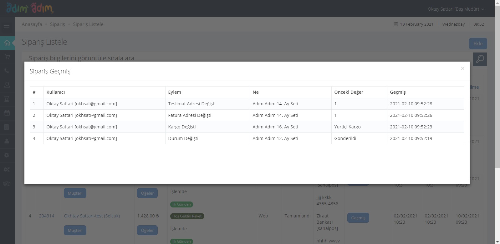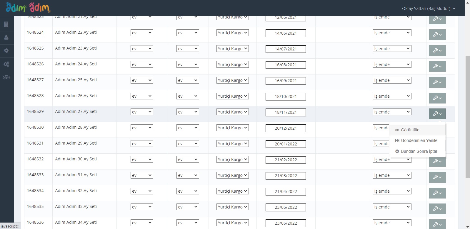 Adim Adim CRM is a type of CRM system that enables businesses to manage web content, customers, call requests and dialogues, subscription-based (continuous) orders, and marketing campaigns based on complex business logics. It was primarily developed for a trading company based in Istanbul, Turkey, specializing in designing, organizing, and selling baby training sets for different baby ages from 9 to 48 months. These training sets were being sent every month to the subscriber customers who had previously paid for the products once or who paid monthly. However, this system can be adapted to be used by any company that sells and sends some products to subscribed customers according to a subscription-based business model.