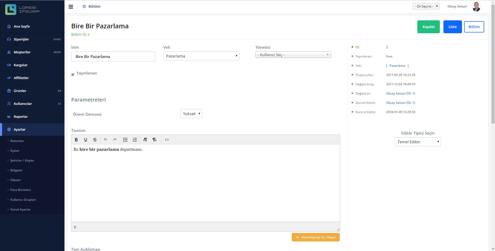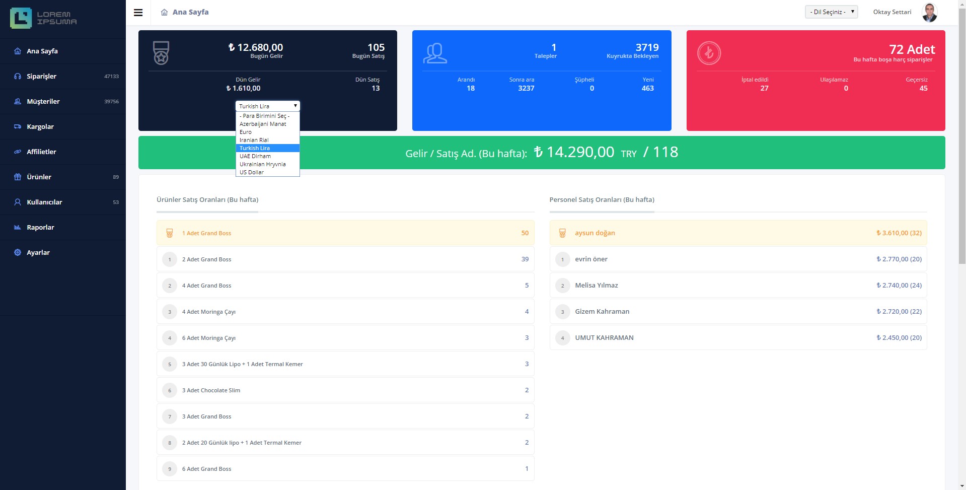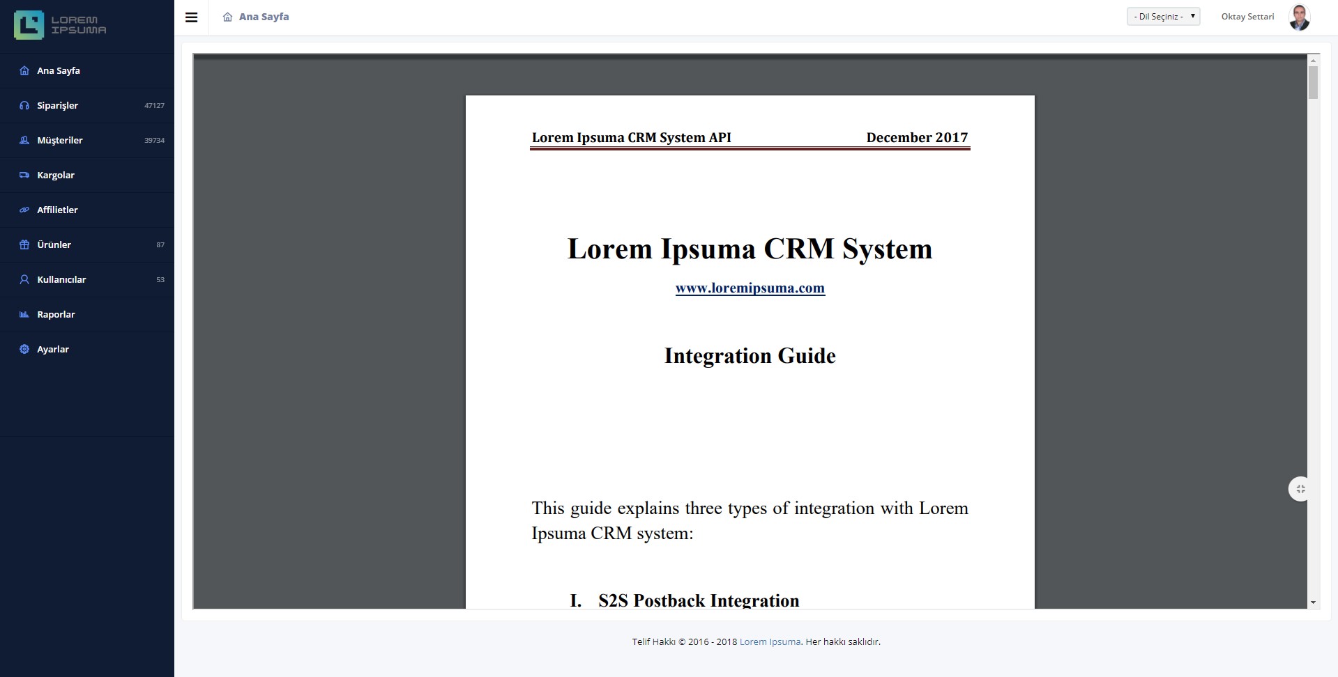 Lorem Ipsuma CRM is a custom, full-featured CRM system built for a marketing startup company based in Istanbul, Turkey. Thanks to its well-designed architecture, this CRM system is a highly extensible and maintainable software system that can be easily and quickly adapted to the new and changing requirements of a marketing company in a very competitive business environment. Its architecture is completely object-oriented and it was developed entirely according to the MVC design pattern. Its core is based on the TPS framework, a PHP framework developed to implement extensible, flexible and highly customizable business applications.